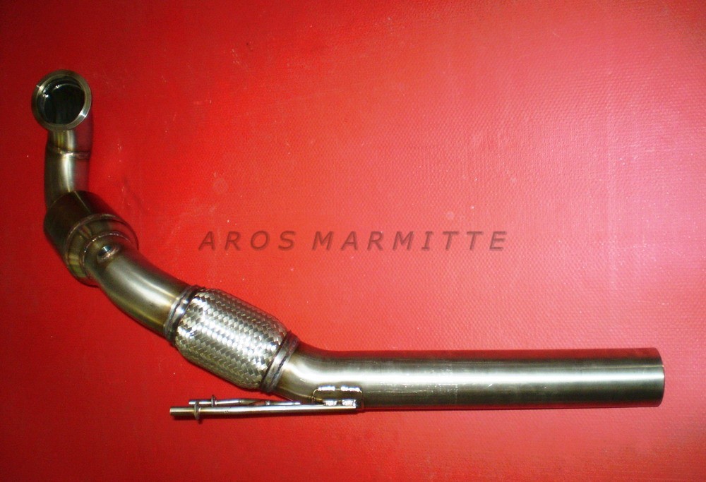 Tubo turbina o Downpipe con catalizzatore metallico 200 cpsi. Il prodotto è di tipo plug&play quindi sostituisce senza alcuna modifica il componente originale. Il downpipe viene realizzato in acciaio AISI 304 e saldato interamente a TIG dalle mani esperte dei nostri operatori. Grazie ad un migliore flusso dei gas ed alle contropressioni generate questo articolo permette un incremento delle prestazioni del motore e un migliore rendimento. Il pezzo è dotato degli attacchi per le sonde lambda e delle staffe necessarie al montaggio in vettura.