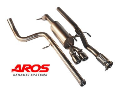 L’intera linea è stata pensata per massimizzare le prestazioni della vettura oltre che a personalizzarla in maniera univoca ed inconfondibile. Infatti lo scarico è stato progettato per garantire un deflusso ottimale dei gas in uscita dalla turbina senza compromettere il confort di marcia. Il finale, che viene impreziosito grazie a due terminali di diametro maggiorato e con taglio obliquo, caratterizza inequivocabilmente il retrotreno mentre il sound grintoso e corposo è l’elemento che distingue l’auto e la rende unica. Dal punto di vista tecnico per mantenere basso il peso dello scarico si sono impiegati solamente tubi in acciaio inox AISI304 con spessore di 1.2 mm mentre le saldature eseguite solamente a Tig aumentano notevolmente il livello di qualità del prodotto. Le flange sono prodotte tramite macchinari a controllo numerico/taglio a laser, con forature di assoluta precisione, per assicurare un montaggio perfetto.Il montaggio è facile e veloce, si sfruttano tutti gli attacchi presenti in vettura.